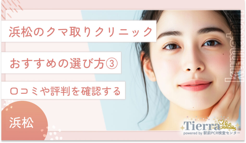 口コミや評判は、実際に浜松でクマ取りを受けた方の体験談を知ることができ、クリニック選びに非常に役立ちます。