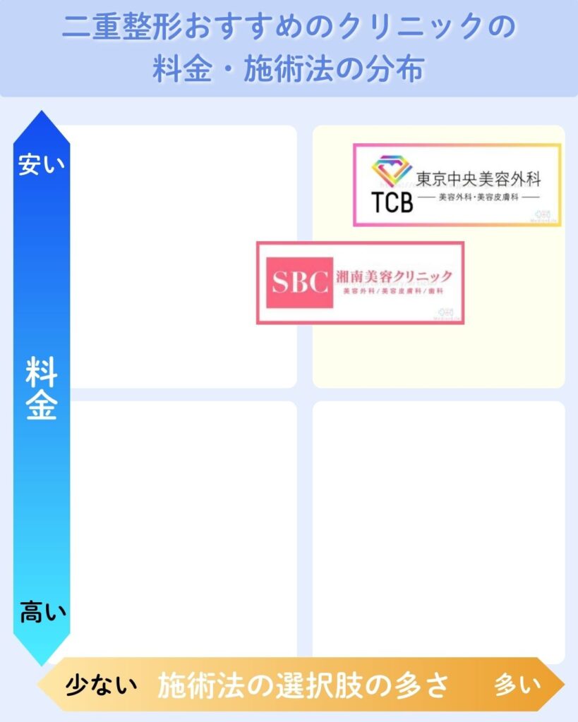 | クリニック | TCB東京中央美容外科 【全国109院】 | 湘南美容外科 【全国247院】 |